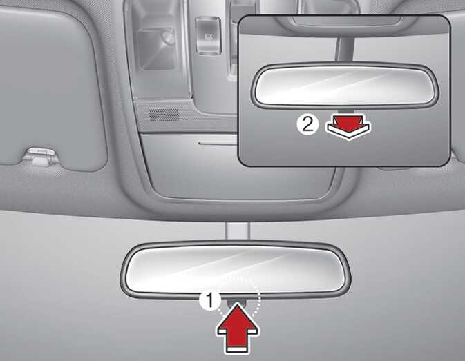Pull the day/night lever toward you (2) to reduce the glare from the headlights of the vehicles behind you during night driving.