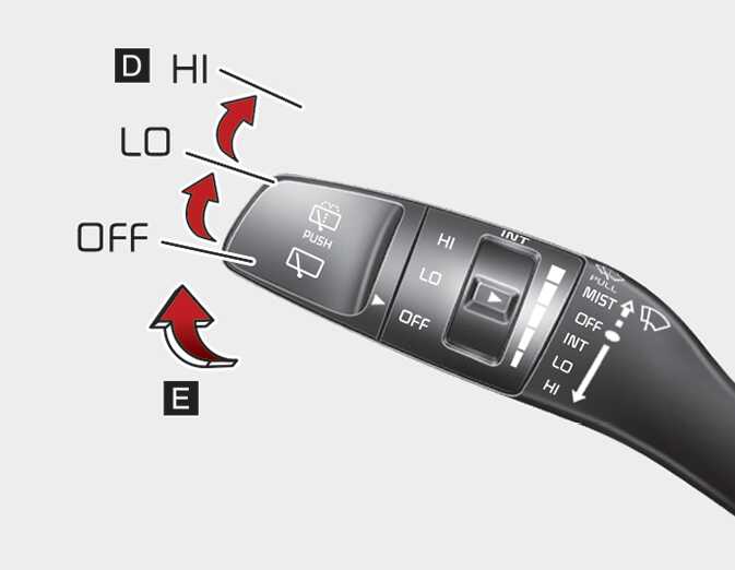 The wipers and washers remove foreign substances from the windscreen and rear window, helping to maintain visibility.