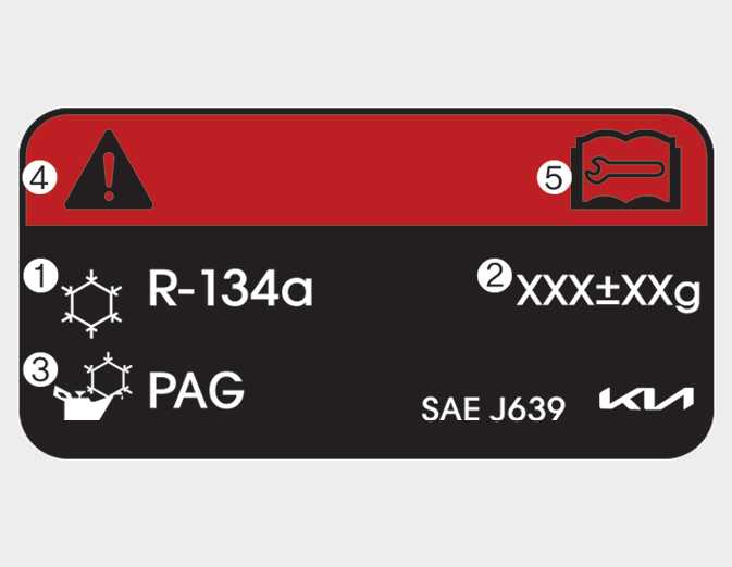 Each symbol and specification on the air conditioning refrigerant label is represented below: