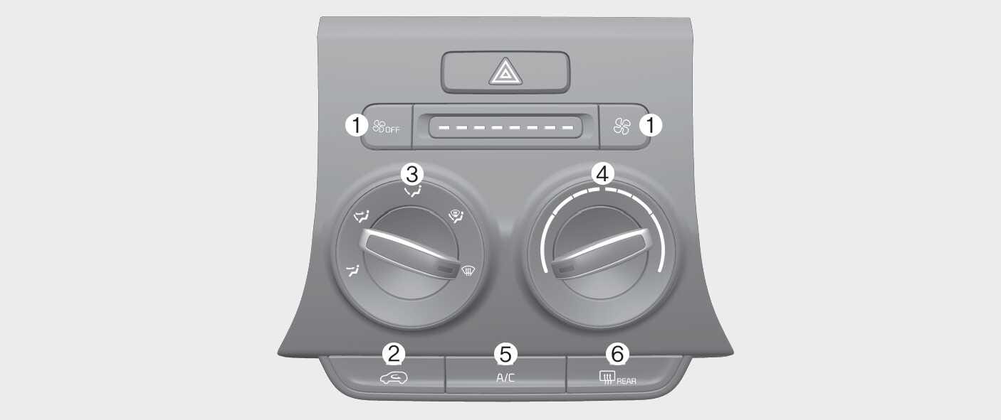 The manual climate control system uses cooling and heating to help maintain a pleasant environment inside the vehicle.