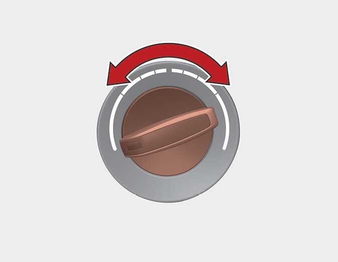 To change the air temperature in the passenger compartment, turn the knob to the right for warm and hot air or to the left for cooler air.