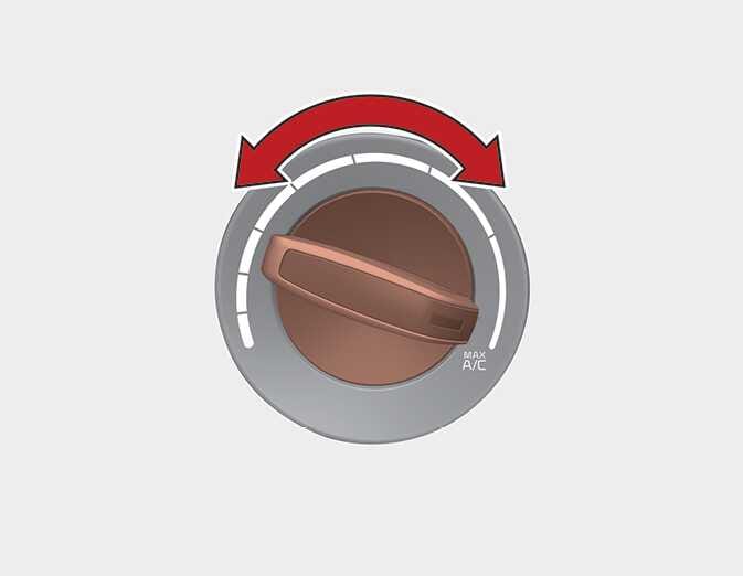 To change the air temperature in the passenger compartment, turn the knob to the right for warm and hot air or to the left for cooler air.
