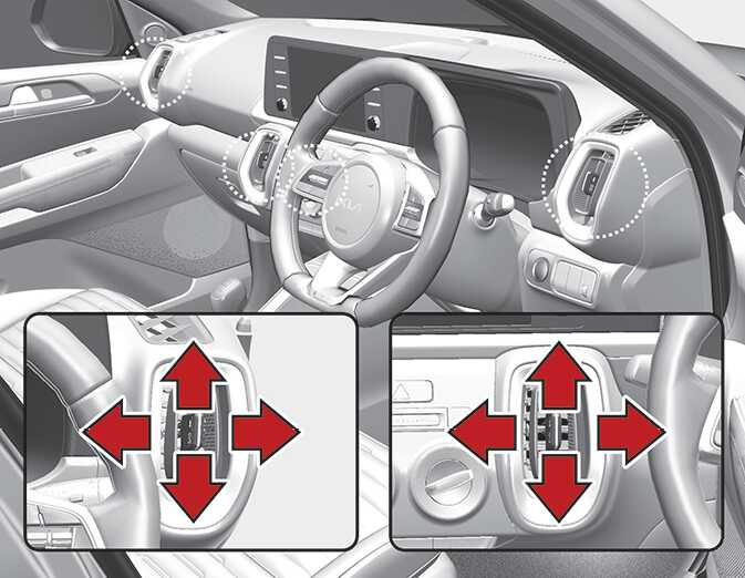 You can adjust the direction of air delivered from these vents using the vent control lever as shown.