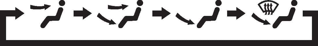 Most of the air flow is directed to the floor, with a small amount of the air being directed to the windscreen, side window defrosters and side air vents.