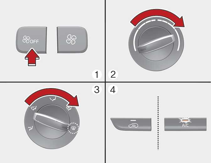 - The outside (fresh) air and air conditioning will be selected automatically.