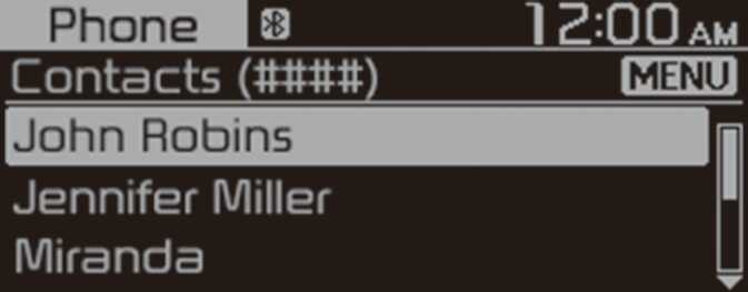 Turn the [ TUNE] knob to select the desired contact, and then press the knob to make a phone call.