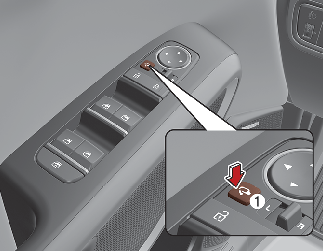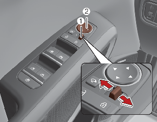 To fold the outside rearview mirror depress the button (1).