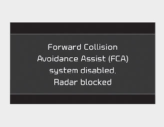In this case, a warning message ("Forward Collision-Avoidance Assist (Forward Collision-Avoidance Assist) system disabled. Radar blocked") will appear to notify the driver. Remove the foreign substances to allow Forward Collision-Avoidance Assist to function normally.