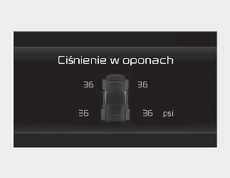 W tym trybie są wyświetlane informacje dotyczące ciśnienia w oponach.