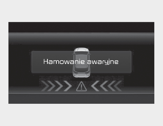 Sterowanie hamulcami zostanie zakończone po zatrzymaniu pojazdu w wyniku hamowania awaryjnego przez około 2 sekundy.