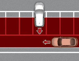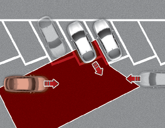 Asystent unikania kolizji z tyłu może wykrywać pojazdy przejeżdżające z tyłu podczas parkowania tyłem na miejsce parkingowe. W takim przypadku funkcja może wyemitować fałszywe ostrzeżenie i sterować hamulcami.