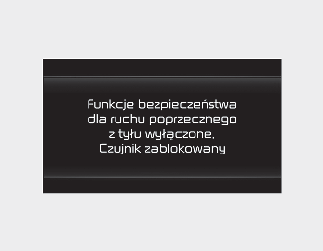 W takiej sytuacji w zestawie wskaźników zostanie wyświetlony komunikat ostrzegawczy „Rear Cross-Traffic Safety system disabled. Radar blocked” (System monitorowania martwego pola wyłączony. Radar zasłonięty). Nie świadczy to o awarii.