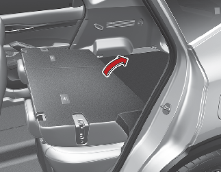 Tirer sur le levier de rabattement de siège arrière. Ensuite, rabattre le siège vers l'avant du véhicule.