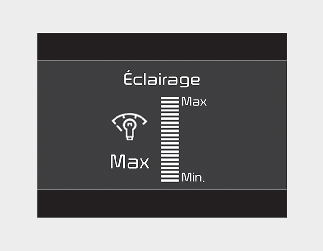 Si vous maintenez le bouton de commande d’éclairage (+ ou -), l’intensité lumineuse change en permanence.