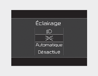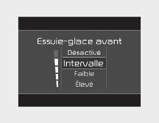 Vous pouvez activer ou désactiver la fonction d'affichage des essuie-glaces/éclairages à partir du mode Paramètres utilisateur sur l'écran LCD du combiné d'instruments.