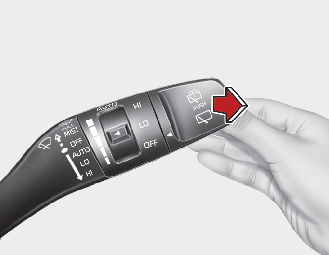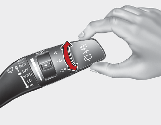 Éloigner le levier de vous pour asperger la lunette arrière et faire fonctionner l’essuie-vitre arrière pour 1 à 3 cycles.