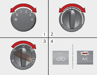 Désembuage de la face intérieure du pare-brise à l'aide du système de climatisation manuel