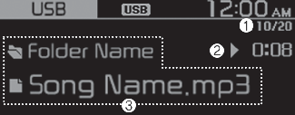 Song information (informations sur les chansons) (Affichage des médias) : sélectionnez des informations comme Folder/File (répertoire/fichier) ou Artist/Title/Album (artiste/titre/album) à afficher pendant la lecture de fichiers MP3.