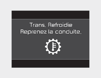 Lorsque le message « Trans cooled. Resume driving. » (Boîte refroidie. Reprenez la route) s'affiche, vous pouvez continuer à rouler.