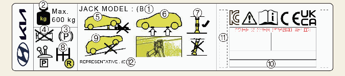 * Eticheta cricului echipat în vehicul poate fi diferită de cea din ilustrație. Pentru specificații detaliate, consultați eticheta ce însoțește cricului.