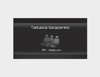 Kun avaat etuoven sen jälkeen, kun takaovi on avattu ja suljettu ja moottori on sammutettu, mittaristoon ilmestyy varoitusviesti ”Tarkasta takaistuimet”.