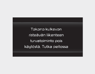 Jos tämä tapahtuu, varoitusviesti ”Blind-Spot Safety system disabled. Mittaristossa näkyy varoitusviesti Tutka estetty.