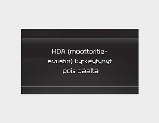 Kun saavut valtateille tai maanteille (moottoriteille), moottoritien ajoavustaja ei käynnisty, jos kaistan seuraamisavustajajärjestelmä on sammutettu, vaikka älykäs vakionopeussäädin on toiminnassa.