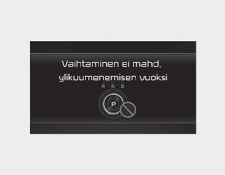 LCD-näyttöön tullee viesti, kun P-vaihdepainike on valittu uudestaan ja vaihde on ylikuumentunut.