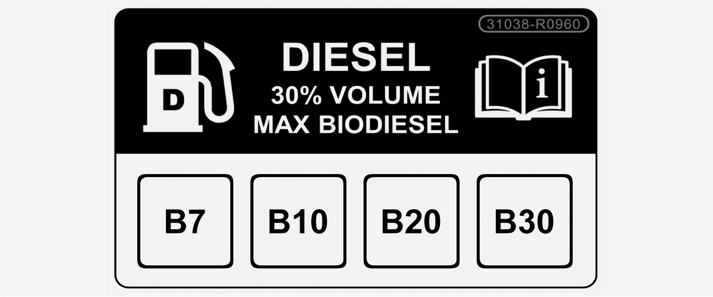 Polttoainemerkintä on kiinnitetty polttoaineen täyttöaukon luukkuun.