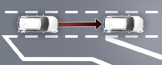 Es werden mögliche Kollisionen auf der benachbarten Spur erkannt, auch wenn der Frontalkollisions-Vermeidungsassistent und das Totwinkel-Erkennungssystem keine Warnung ausgeben.