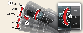 A gépkocsi mosása során állítsa az ablaktörlő kapcsolóját OFF (0) (kikapcsolt) helyzetbe az ablaktörlő automatikus működésének kikapcsolásához.
