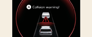 Az ütközési figyelmeztetés figyelmeztető üzenettel, hangjelzéssel és a kormánykerék rezgésével (felszereltségtől függően) figyelmezteti a vezetőt.