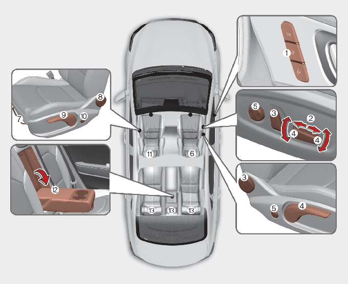 If there are occupants in the rear seats, be careful whilst adjusting the front seat position.