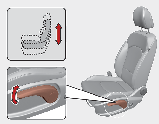 To change the height of the seat cushion, push the lever that is located on the outside of the seat cushion upwards or downwards.