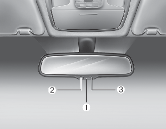 The electric rear view mirror automatically controls the glare from the headlights of the vehicles behind you in nighttime or low light driving conditions. The sensor (3) mounted in the mirror senses the light level around the vehicle, and automatically controls the headlight glare from the vehicles behind you.