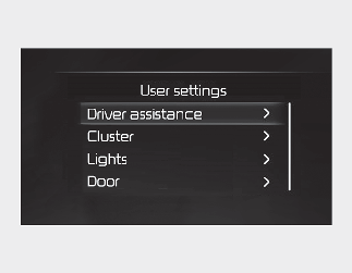 To change the Driver Assistance settings, press the OK button on the steering wheel for more than 1 second when the Driving Assist mode is displayed.
