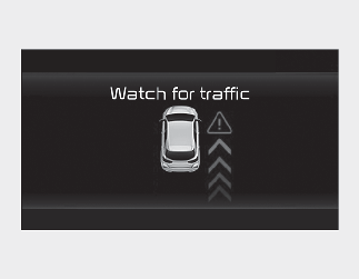 • When an approaching vehicle from the rear is detected at the moment a door is opened, the 'Watch for traffic' warning message will appear on the cluster, the warning light will illuminate on the outside rear view mirror and an audible warning will sound.