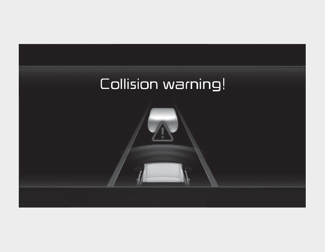 To warn the driver of a collision, the 'Collision warning!' warning message will appear on the cluster, and an audible warning will sound and the steering wheel will vibrate.