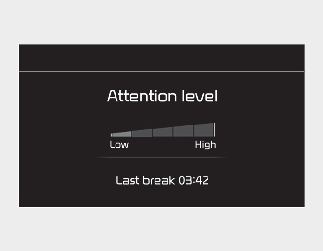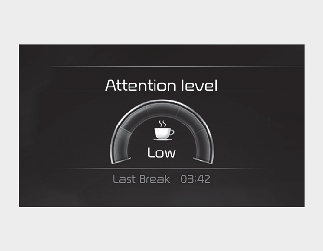 The basic function of Driver Attention Warning is to inform the driver the 'Attention level' and to warn the driver 'Consider taking a break'.