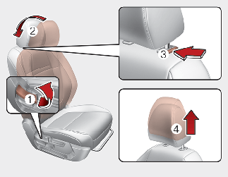For maximum effectiveness in case of an accident, the headrest should be adjusted so the middle of the headrest is at the same height of the centre of gravity of an occupant's head. Generally, the centre of gravity of most people's head is similar with the height of the top of their eyes. Also, adjust the headrest as close to your head as possible. For this reason, the use of a cushion that holds the body away from the seatback is not recommended.