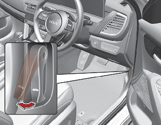 Open the bonnet after turning off the engine on a flat surface, shifting the shift lever to the P (Park) position for Automatic Transmission/Intelligent Variable Transmission and to the 1st (First) gear or R (Reverse) for Manual Transmission/Intelligent Manual Transmission, and setting the parking brake.