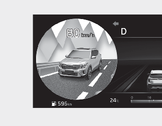 Blind-Spot View Monitor displays the rear blind spot area of the vehicle in the cluster when the turn signal is turned on to help safely change lanes.
