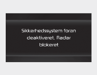 kollision-undgåelse. Hvis dette sker, er ‘Forward Safety system disabled. Radar blokeret’ advarselsmeddelelse vises (slukkes