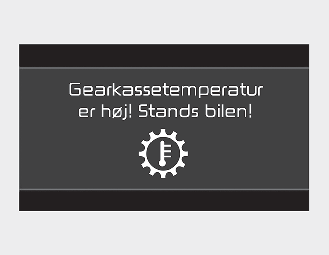 Hvis koblingen overophedes, tilkobles funktionen for sikker kørsel, kontrollampen for gearets position blinker på Instrumentklyngen, og der høres en kimen. På dette tidspunkt vises advarselsmeddelelsen "Transmission temp. is high! Stop safely" (Gearkassetemperatur er høj! Stands bilen!) på LCD-skærmen, og kørslen bliver måske ujævn.