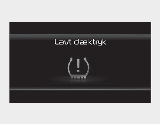 Hvis dæktrykindikatoren lyser, og der vises en advarselsmeddelelse på LCD-skærmen, er dæktrykket i et eller flere af dækkene for lavt.