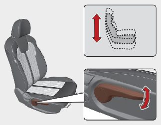 To change the height of the seat cushion, push the lever upwards or downwards.