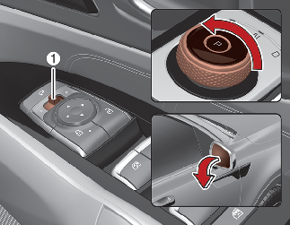 Press a corresponding point on the mirror adjustment control (2) to position the selected mirror up, down, left or right.