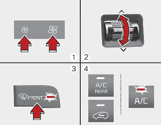 If the air conditioning and outside (fresh) air position are not selected automatically, adjust the corresponding button manually.