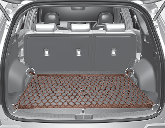 To keep items from shifting in the cargo area, you can use the 4 holders located in the cargo area to attach the luggage net,
