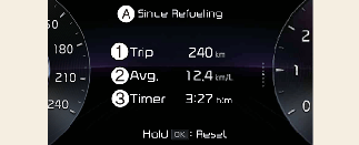 Para reiniciar la información manualmente, mantenga pulsado el botón OK en el volante mientras se muestra la Información después del repostaje.